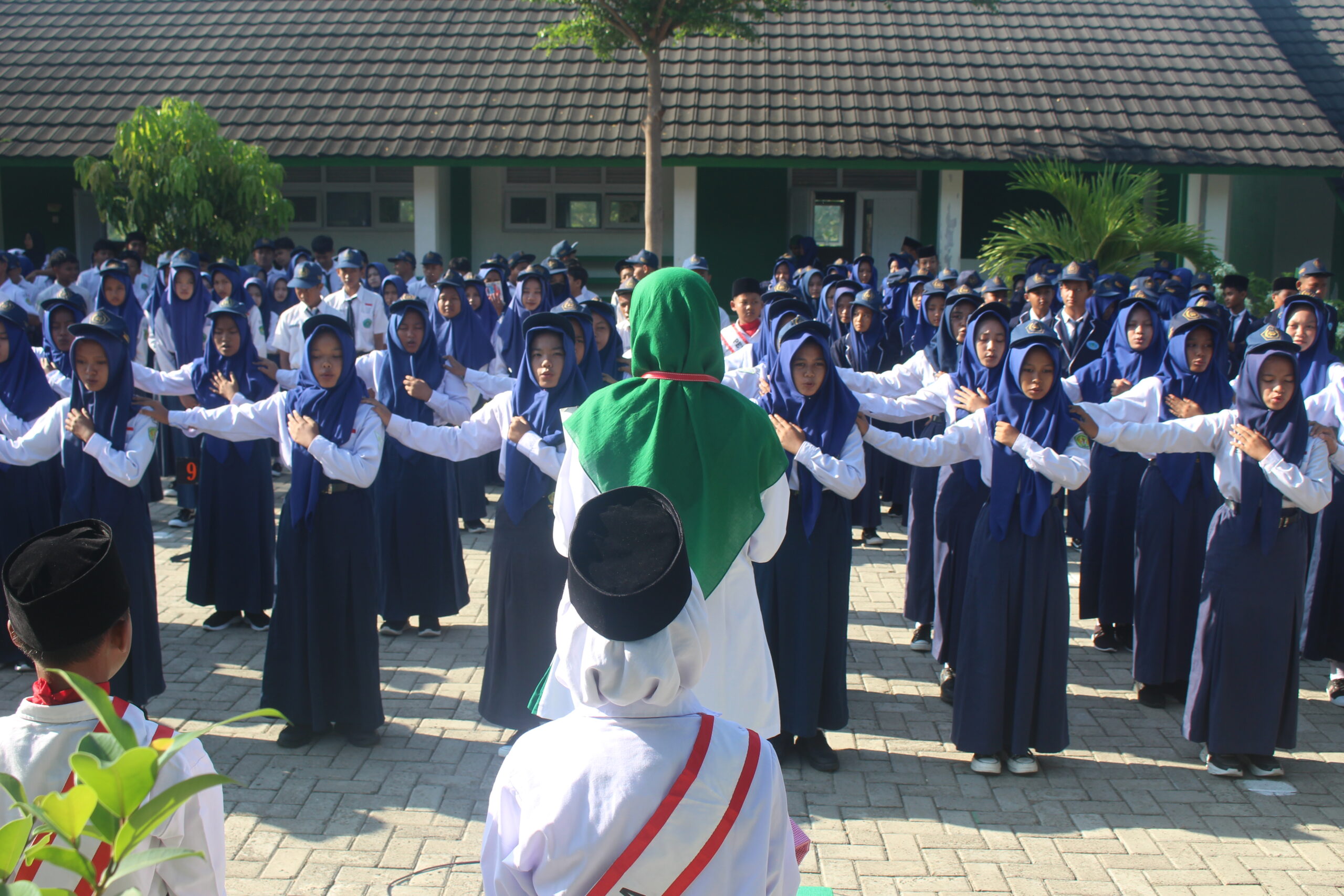Yuni Dewi Lestari, Kepala MTsN 3 Rembang, memandu pengikraran janji OSIM baru MTsN 3 Rembang (13/10).